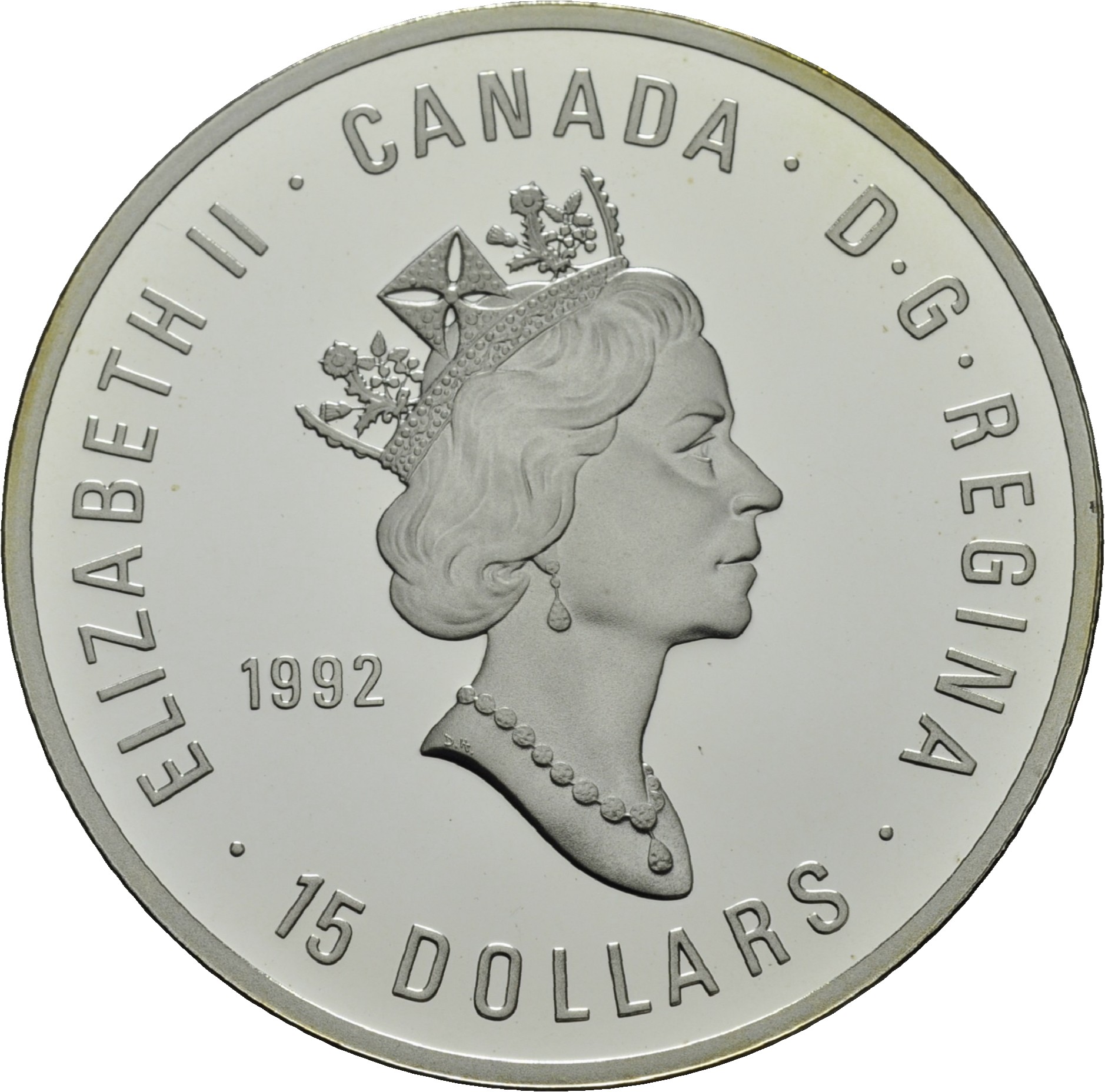 15 dollar 1992 Canada. 100 år jub. Olympiske leker33,63 gr. 925s. I org. eske
