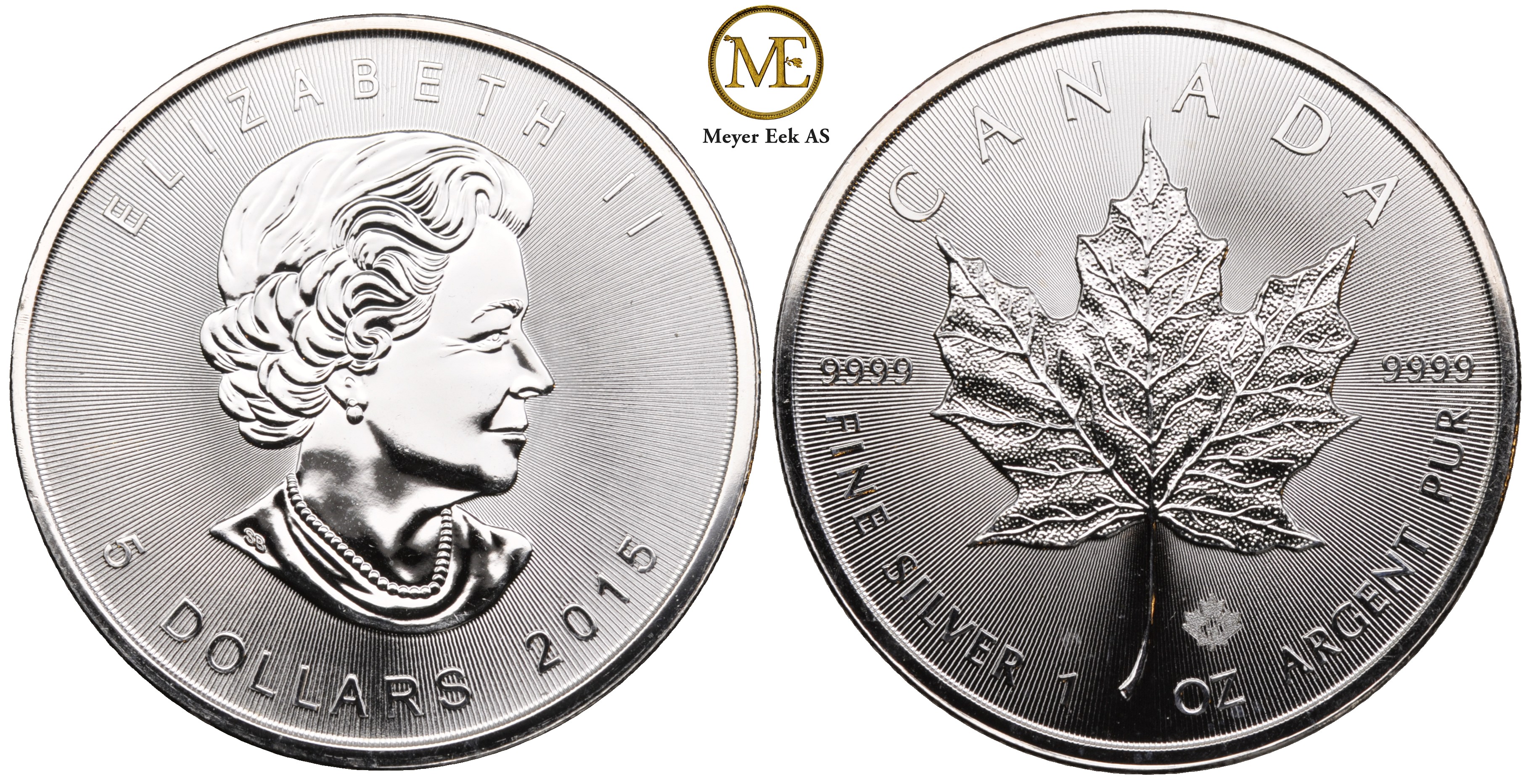 5 dollar 2015 Queen Elizabeth II. "løv merket" 31,1 gr. (999) ProofKun 11 stk. på lager!