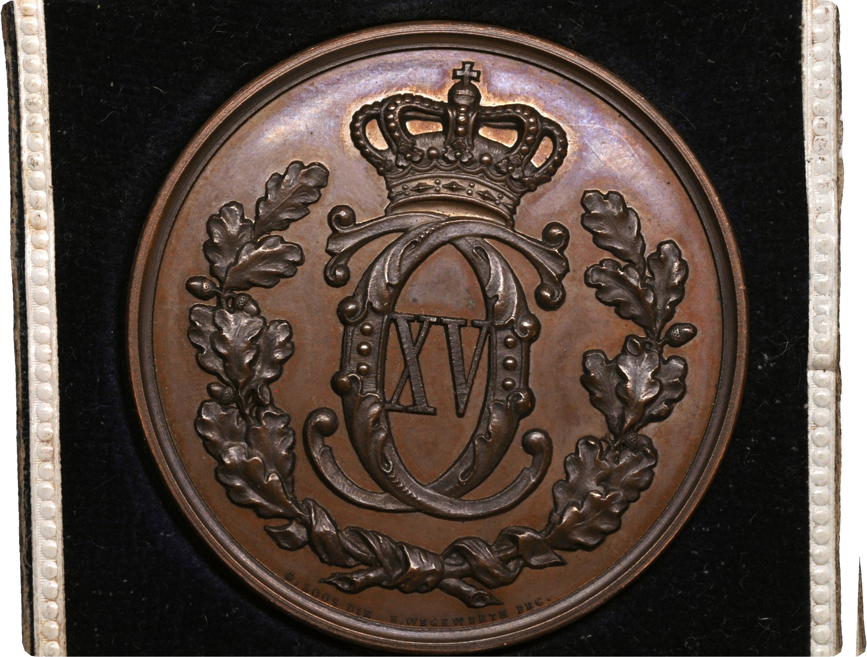Carl XV. Industriutstillingen i Tromsø i 1870. Prismedalje. Wechwerth. Bronse. Praktfult eksemplar i original eske i meget god stand. 41 mm. Kv.0