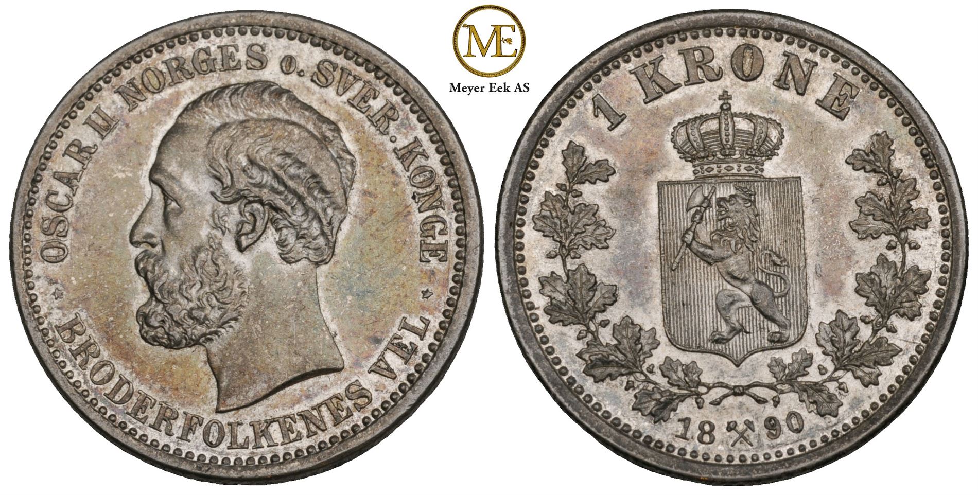 1 krone 1890 Oscar II. Flott mynt. Kv.0/01