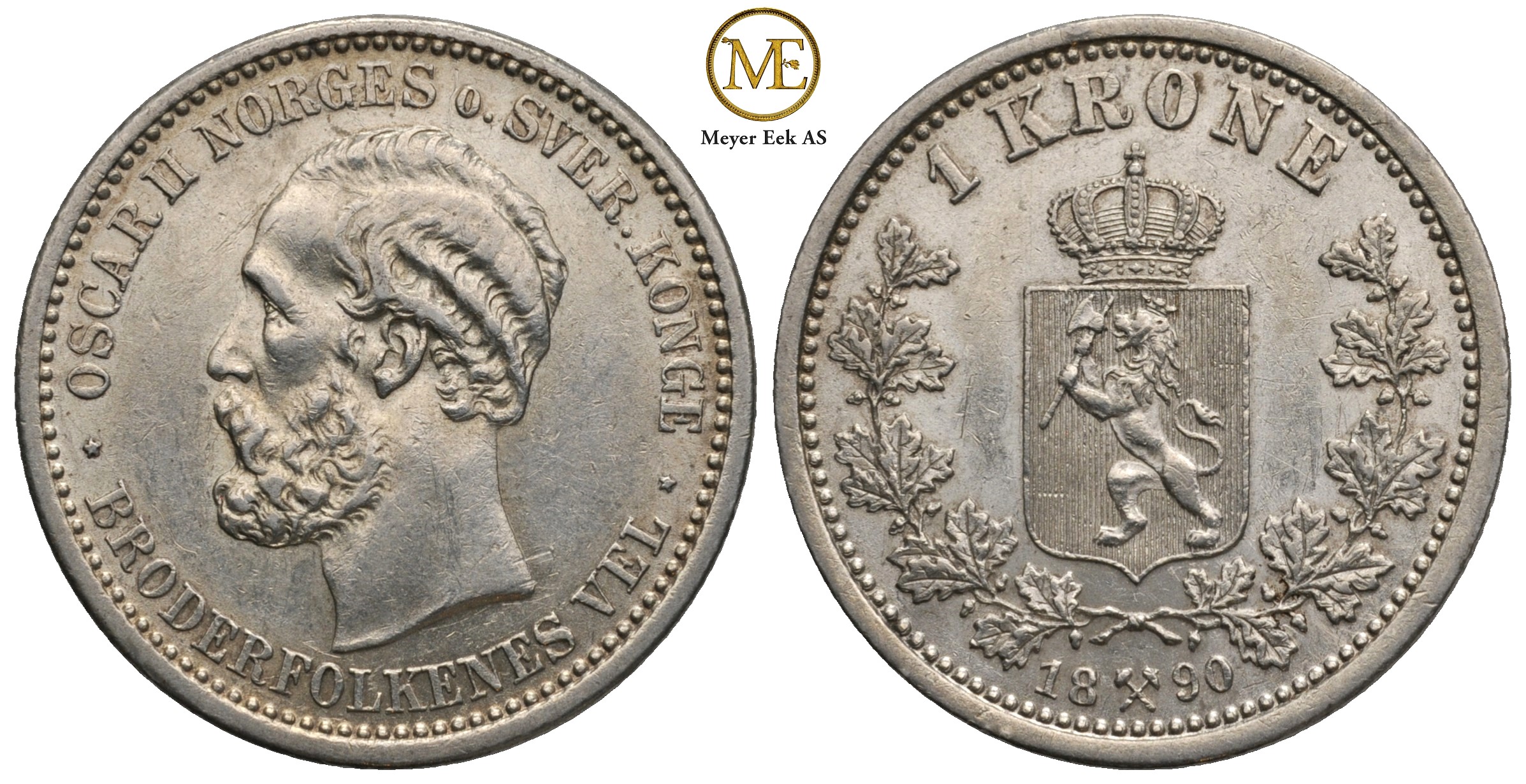 1 krone 1890 Oscar II. Pen mynt. Kv.01