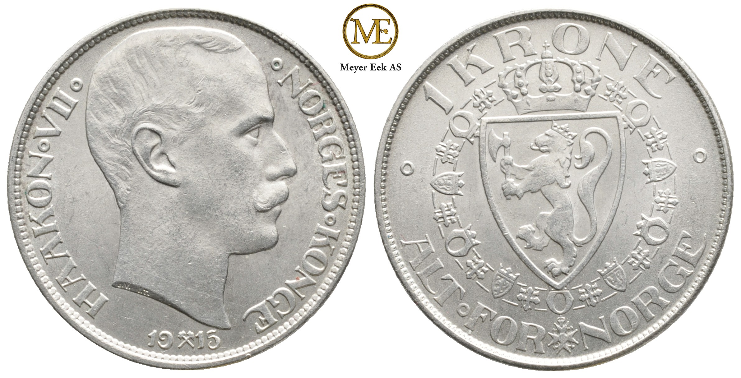 1 krone 1915 Haakon VII. Flott mynt. Kv.0