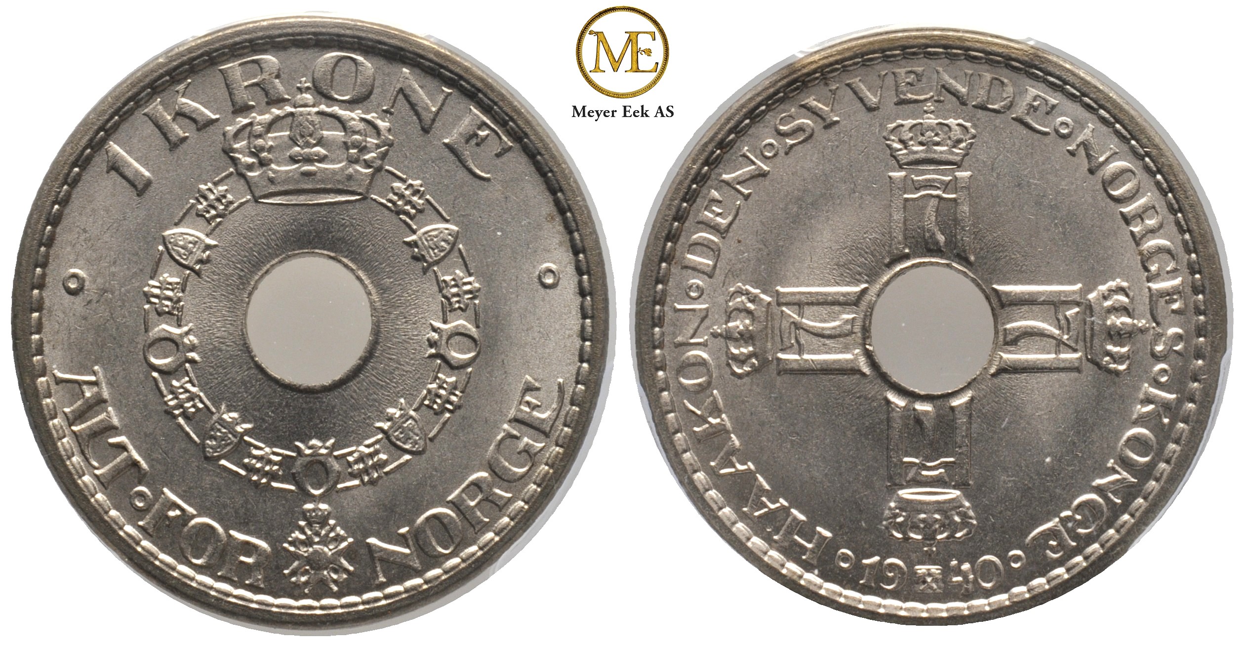 1 krone 1940 Haakon VII. Gradert til MS66 hos PCGS. Prakt eksemplar
