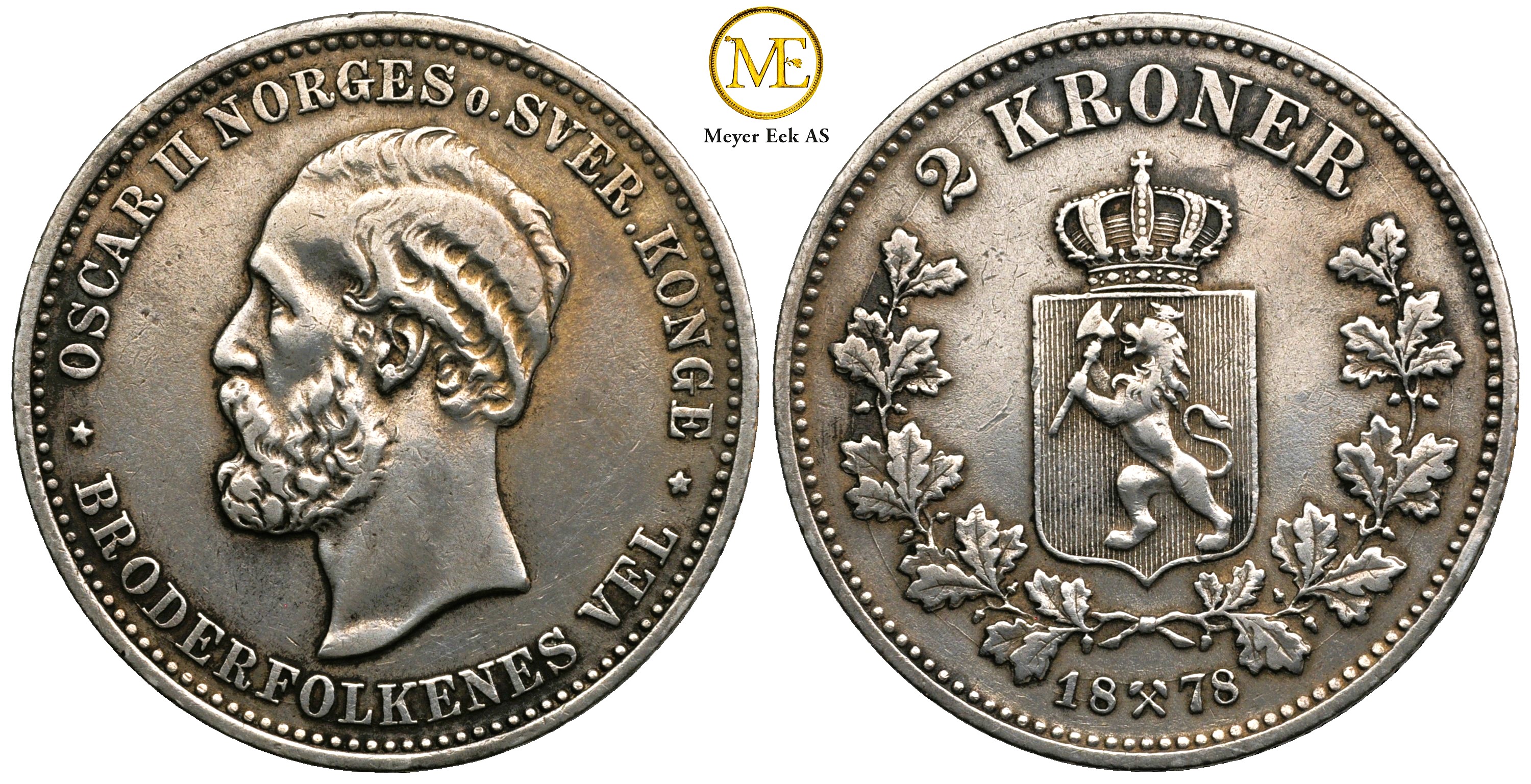 2 kroner 1878 Oscar II. Pen mynt. Kv.1++