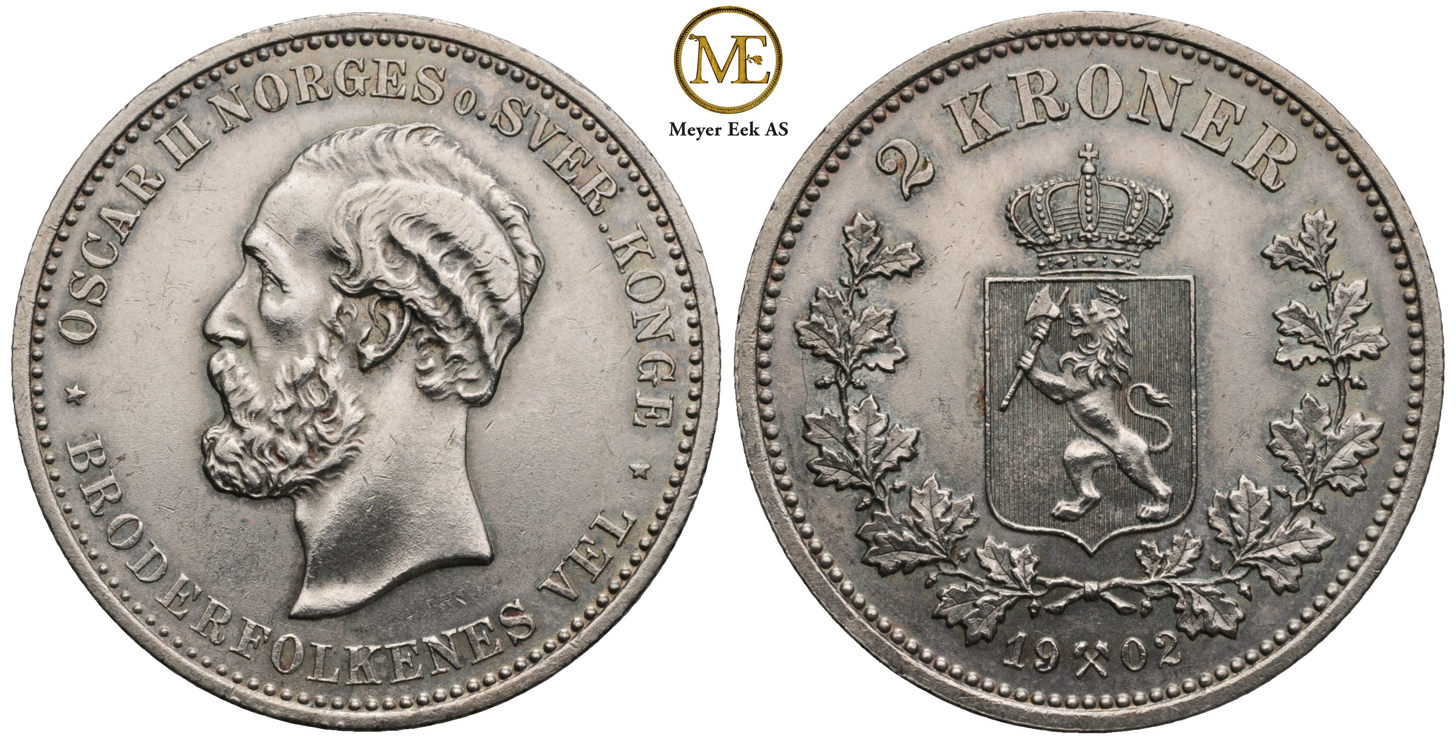 2 kroner 1902 Oscar II. Lett rens advers. 01-0/01