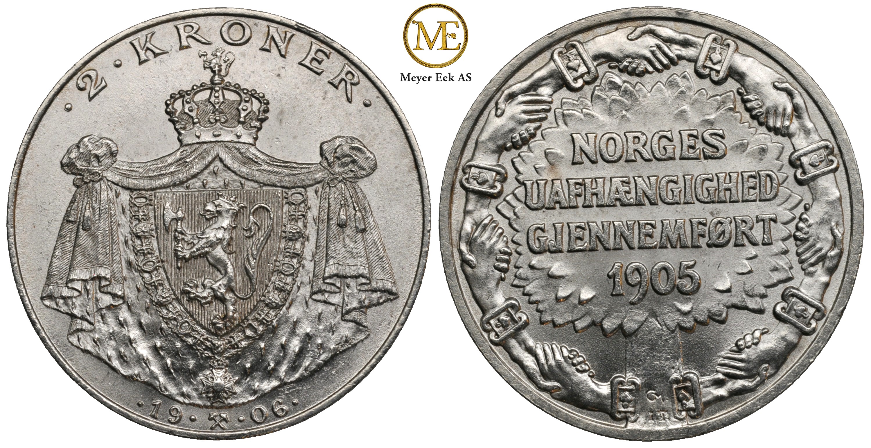 2 kroner 1906 Haakon VII. Jubileum. Praktfull mynt. Kv.0