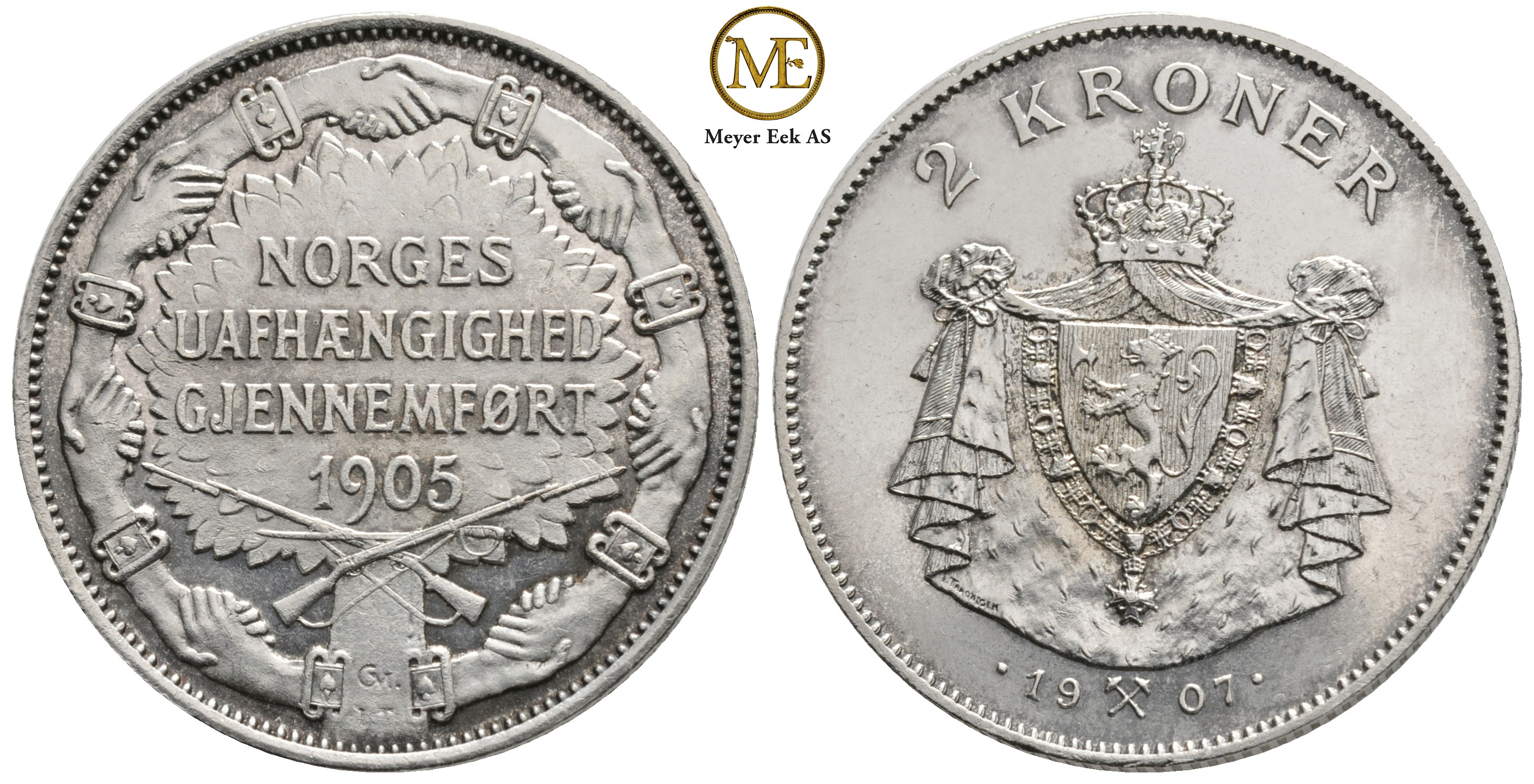 2 kroner 1907 m/gevær Haakon VII. Kv.0/01Lett rens