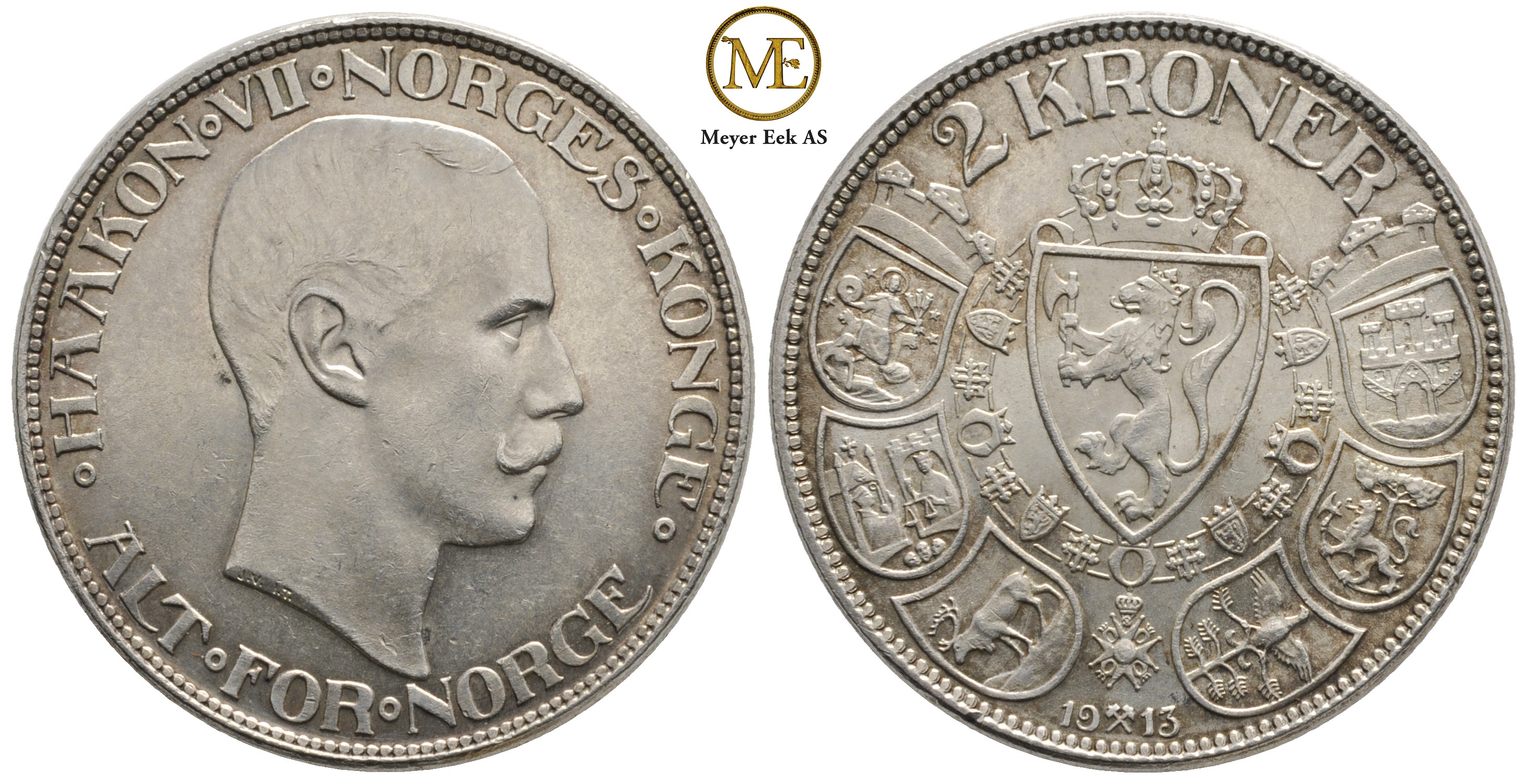 2 kroner 1913 Haakon VII. Kv.0/01meget pent eksemplar