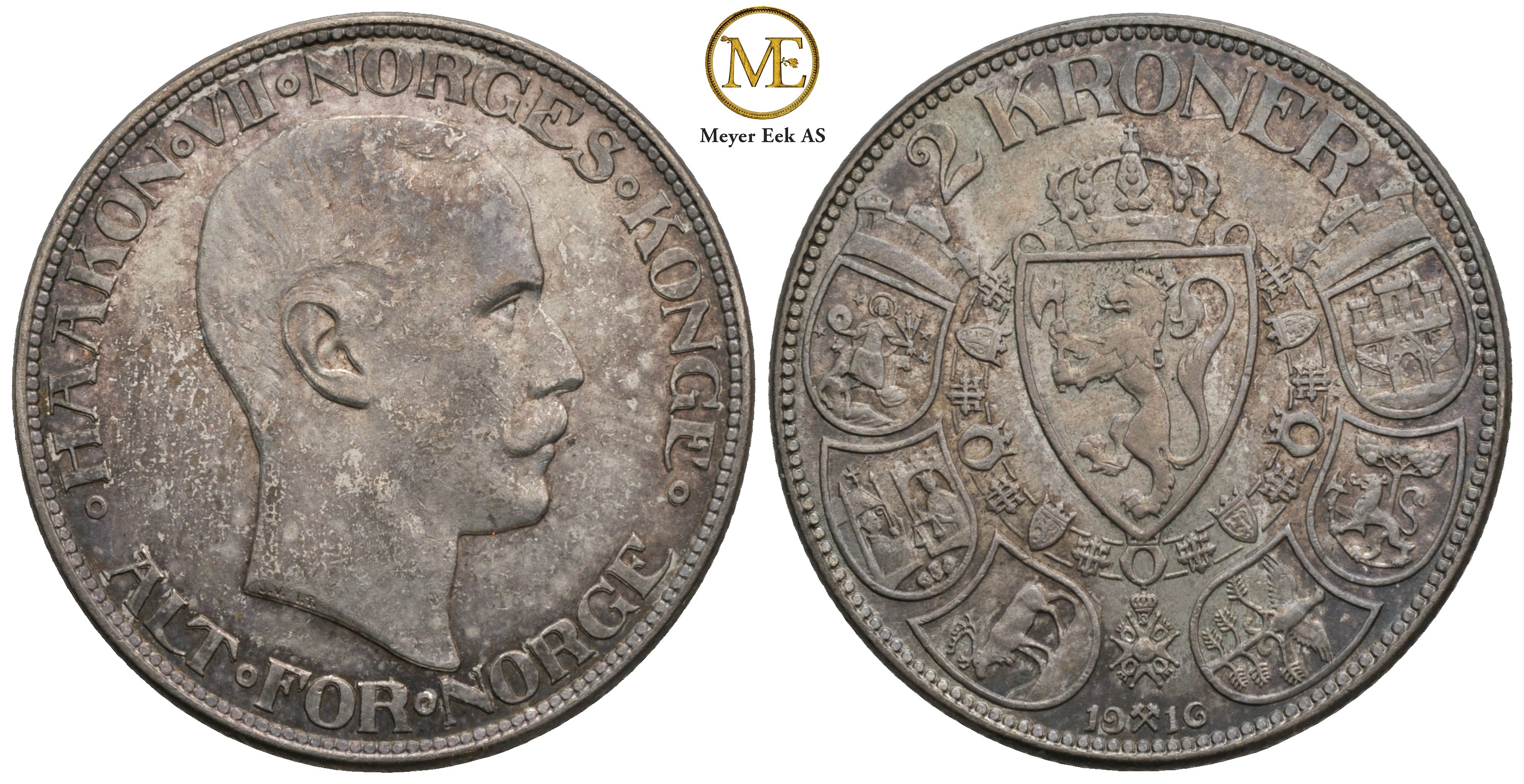 2 kroner 1916 Haakon VII. Pen toning. Kv.01