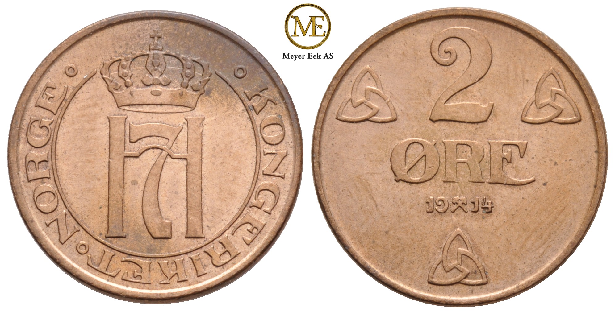 2 øre 1914 Haakon VII. Kv.0lett renset.