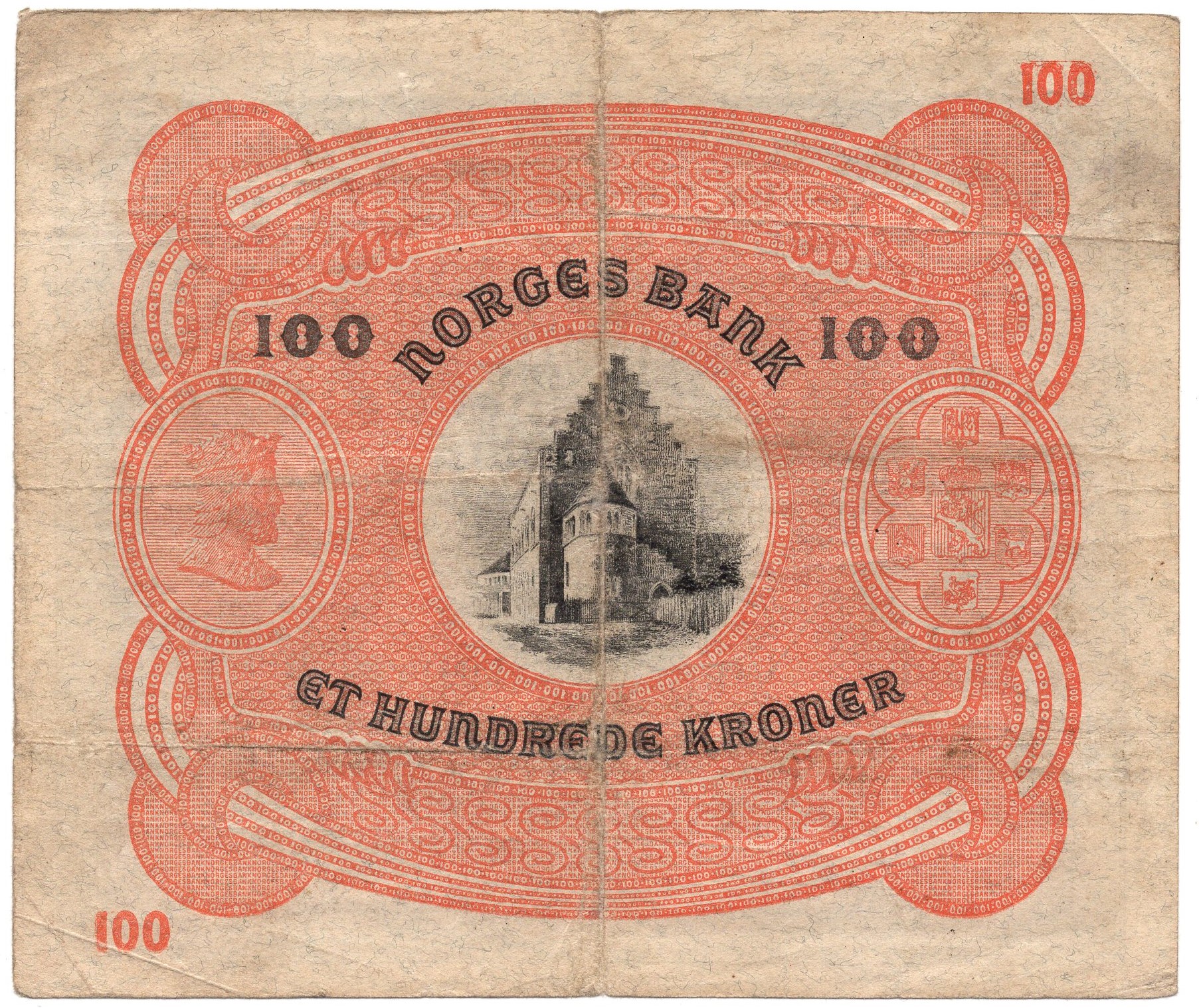 100 kroner 1921 A.4931787. S-seddel. 2 små hull. Kv.1/1-