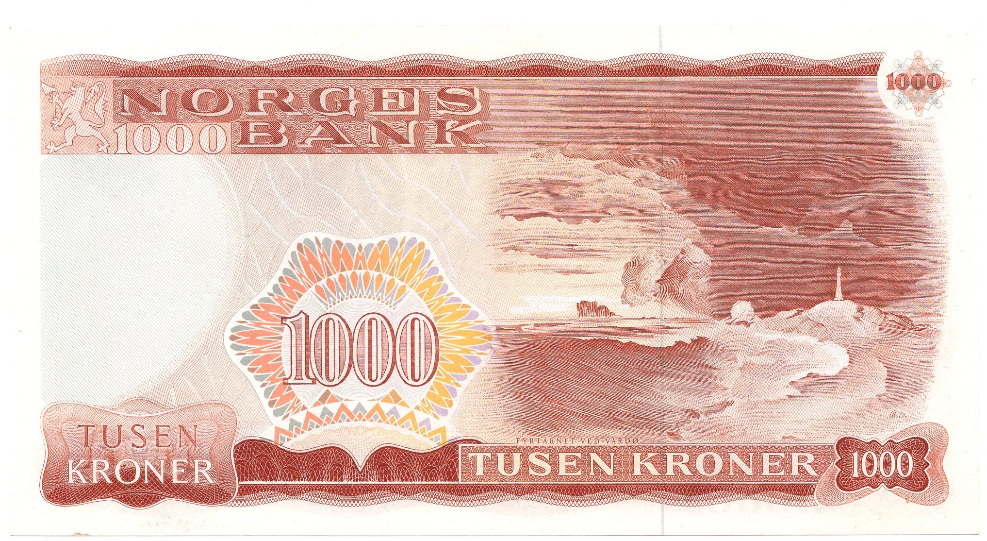 1000 kroner 1975 A.0263077. Kv.0/01Kun små håndteringsmerker. Flott seddel