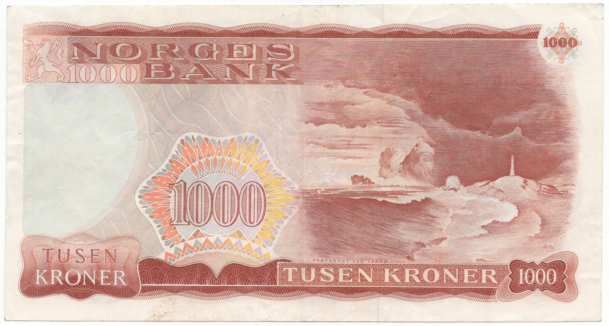 1000 kroner 1985 C.9569994. Kv.1NP.74C. Lavt opplag sign. Skånland/Sagård.