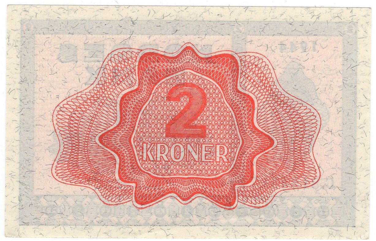2 kroner 1944 C.8184517. Strøken seddel. Kv.0