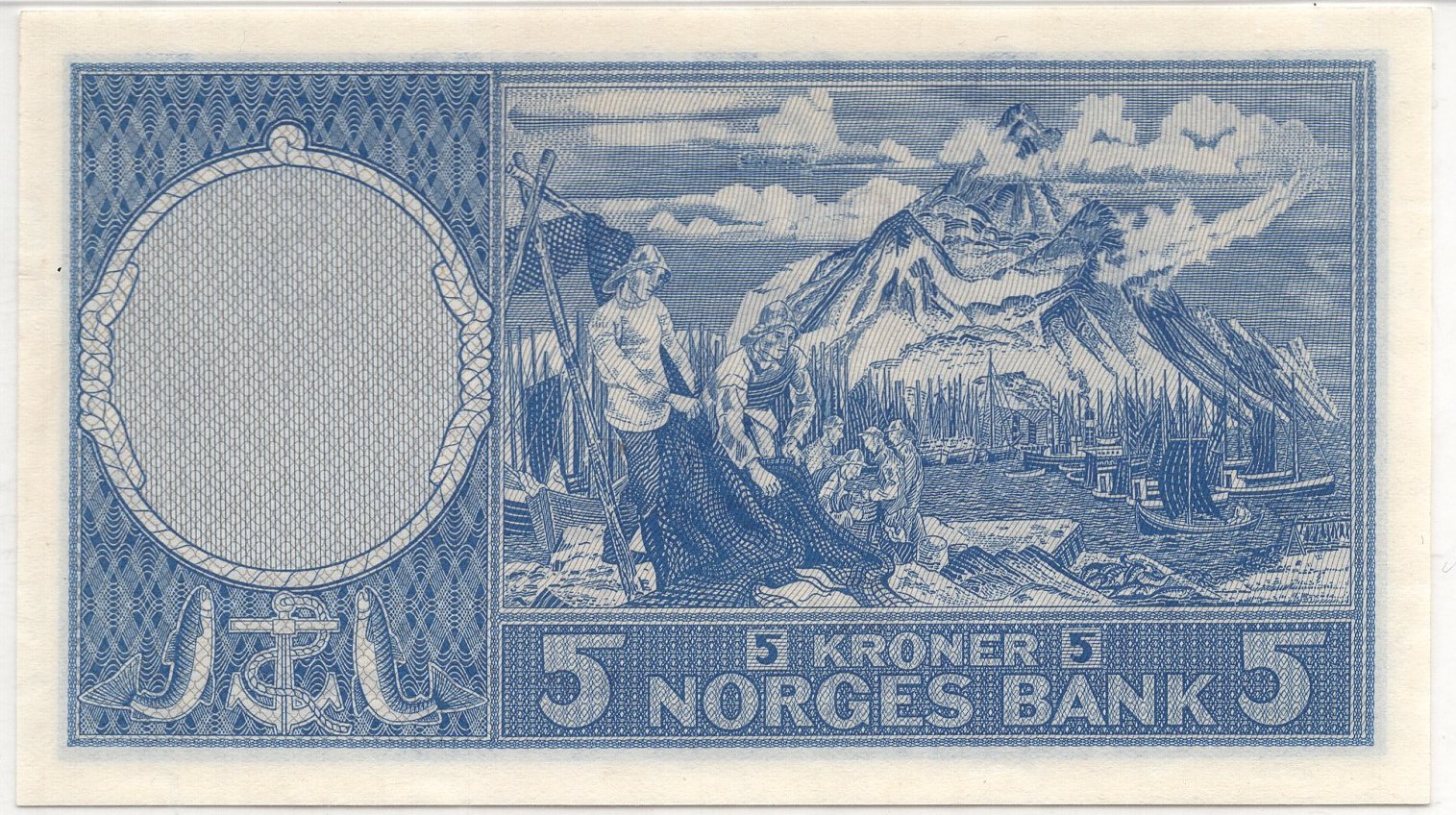 5 kroner 1957 F.2886582. Gradert til 65 EPQ hos PMG. Nydelig seddel