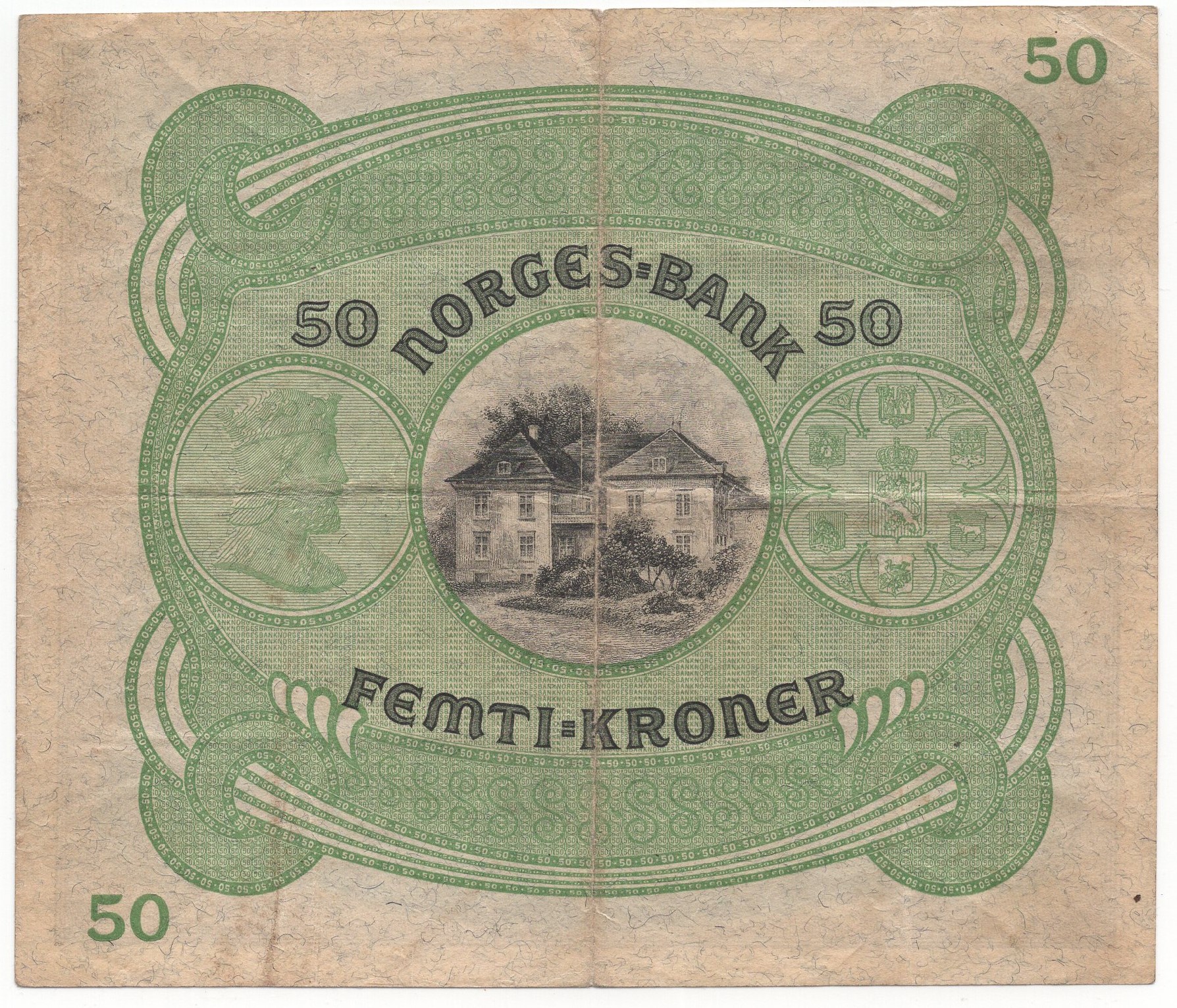 50 kroner 1936 B.4601339. ingen rifter. Lavt opplag. Kv.1/1-