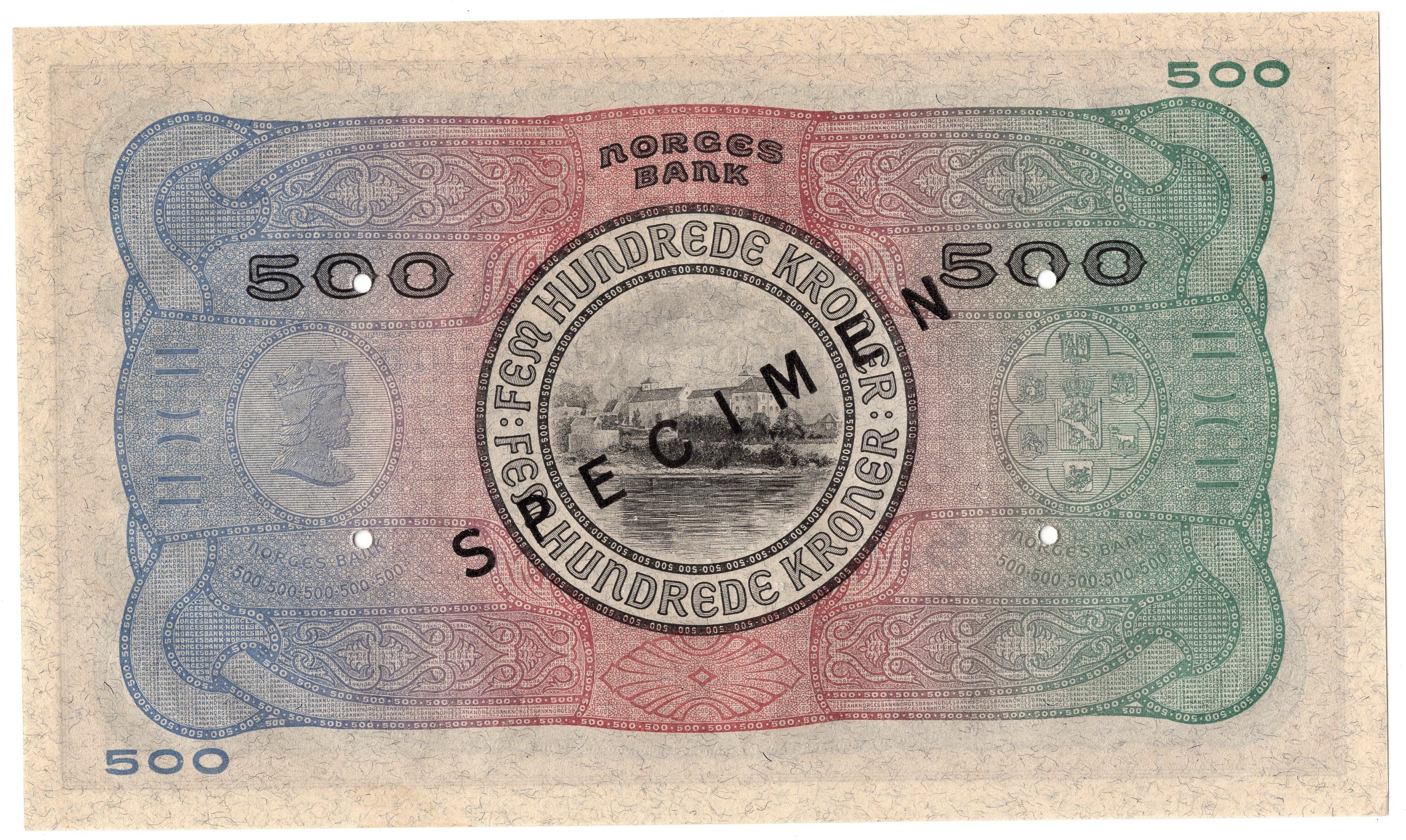 500 kroner 1944 A.0524032. SPECIMEN. Kv.0Strøken seddel. Sjelden og undervurdert. God mulighet til å skaffe seg et topp eksemplar