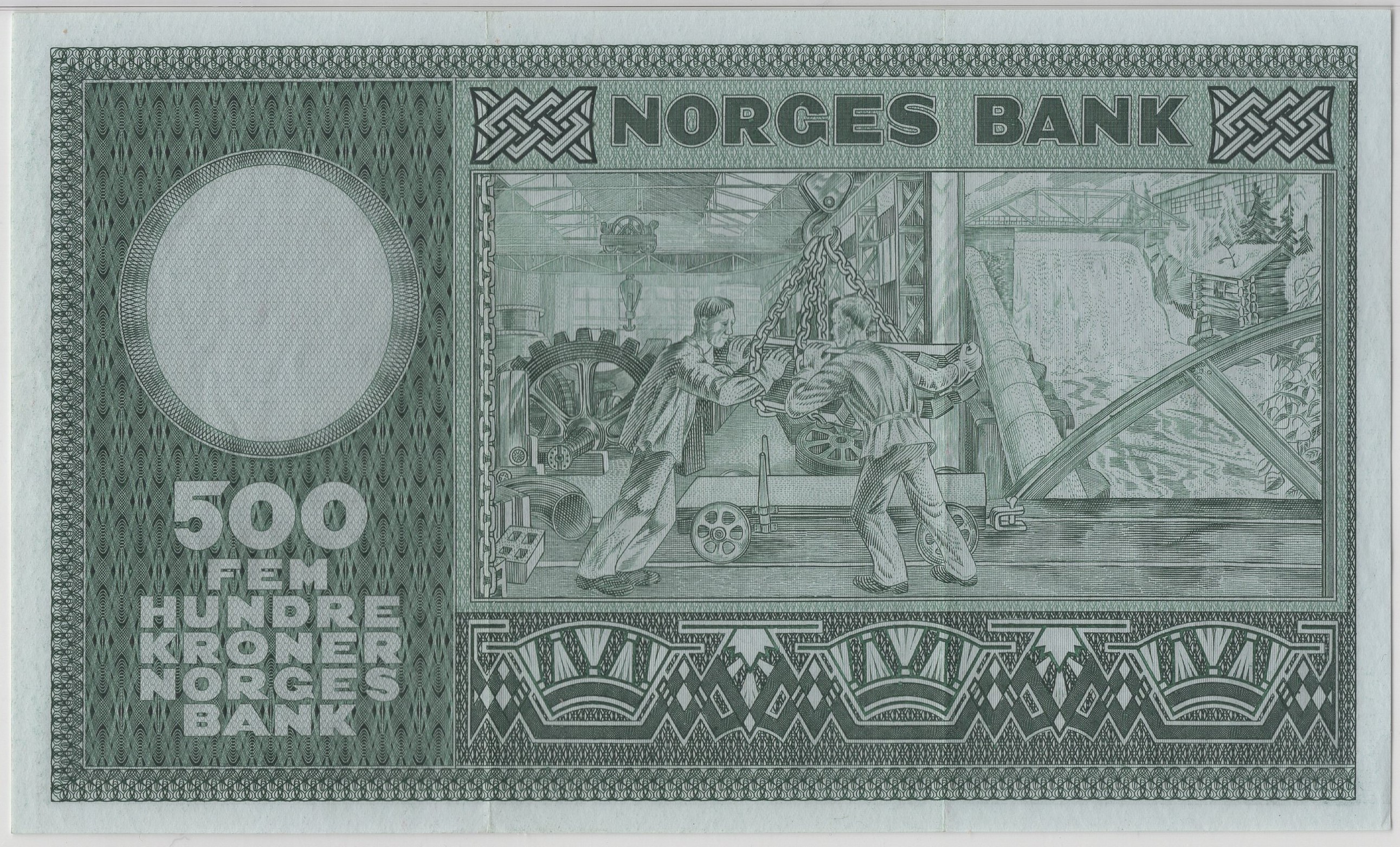 500 kroner 1963 A.1628099. Gradert til 55 EPQ hos PMG. To svake midtbretter. Kv.01