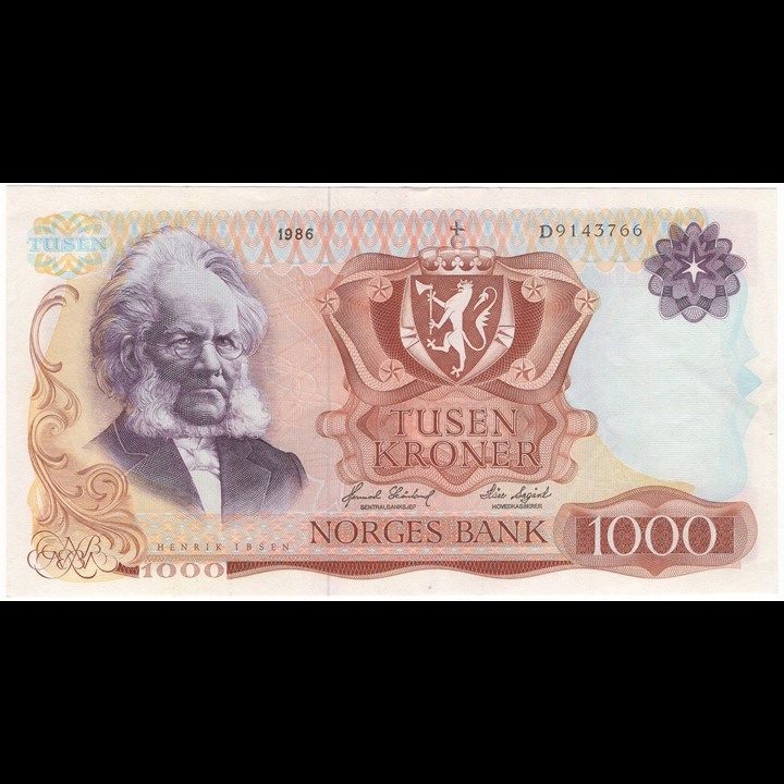 1000 kroner 1986 D.9143766. Kv.1/1+